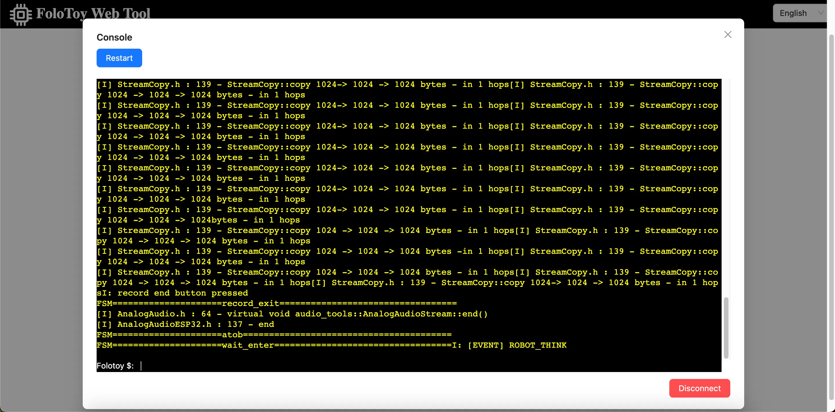 - Apri il Folo Toy Web Tool, quindi fai clic sul pulsante "Console" per connetterti al giocattolo.